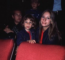 Aw! Matching outfits for a little family time. Barbra and son Jason Gould, who grew up to be an actor himself, smile for the cameras in the theater.